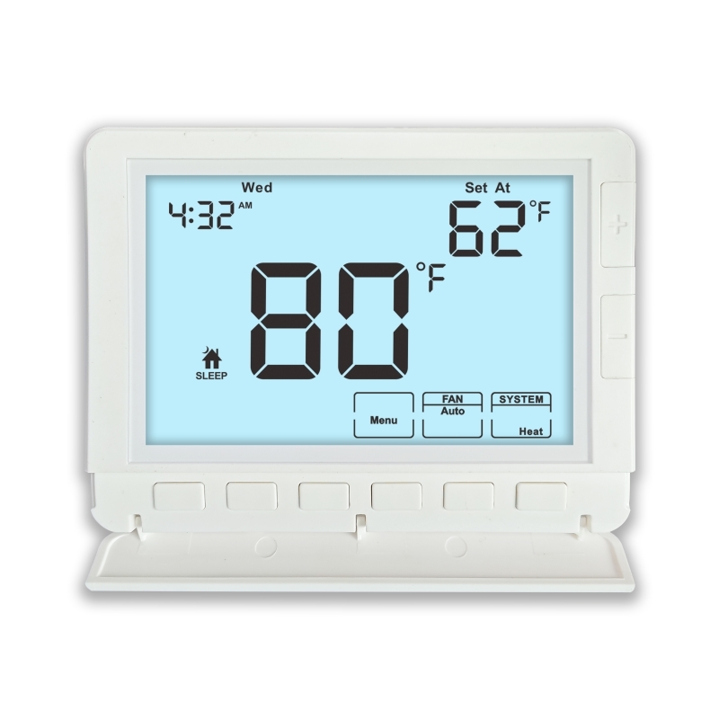 電子室温計は,従来の暖房・冷却システムと熱ポンプシステムと互換性があります.従来のHVACセットアップでは,暖房と冷却の1段階 (1H/1C) をサポートします.熱ポンプシステムでは,補助熱または緊急熱なしで,暖房段階と冷却段階を1つで動作します.現代的な熱ポンプ装置に最適化この二重互換性により,広範囲のHVACアプリケーションに適した汎用的なインテリジェント温度コントローラになります.